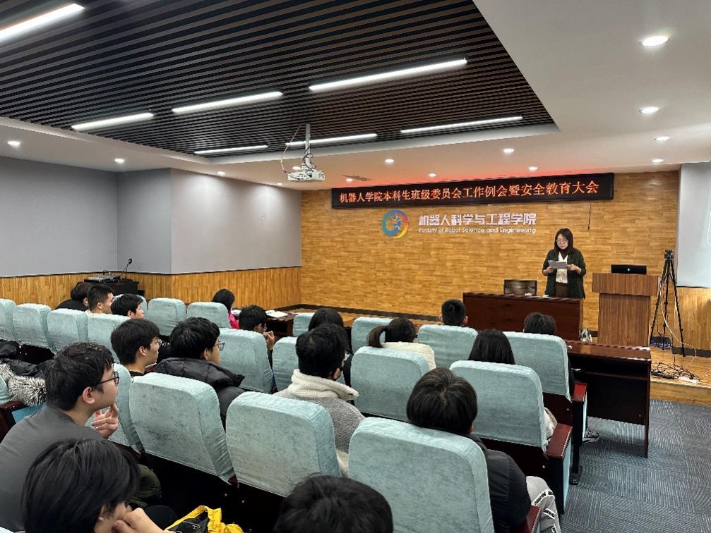 为深入学习贯彻习近平总书记给437bwin必赢国际官网全体师生的重要回信精神,进一步加强学院学生骨干队伍建设,增强引领力、组织力、服务力。2023年12月28日,机器人学院本科生班级委员会工作例会暨安全教育大会在浑南校区建筑B302顺利举行。机器人学院学生工作办公室主任张孟新、辅导员汪青以及本科生各班级班委参加本次会议。会议由张孟新主持。
