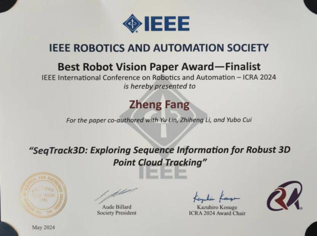 ICRA 2024机器人视觉最佳论文答辩现场及证书