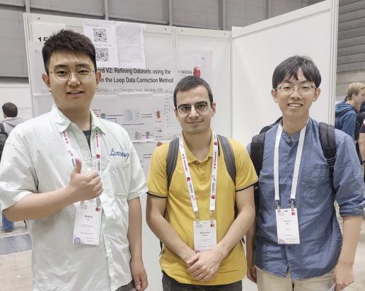 会议期间,许继谦(导师房立金)、李秋昊(导师姜杨)、李智恒(导师方正)分别做了口头报告,李秋昊(导师姜杨)在ICRA 2024的展览会场上展示了论文的海报,并同与会专家就技术细节进行深入的交流,对仍亟待解决的关键问题进行进一步的研讨。