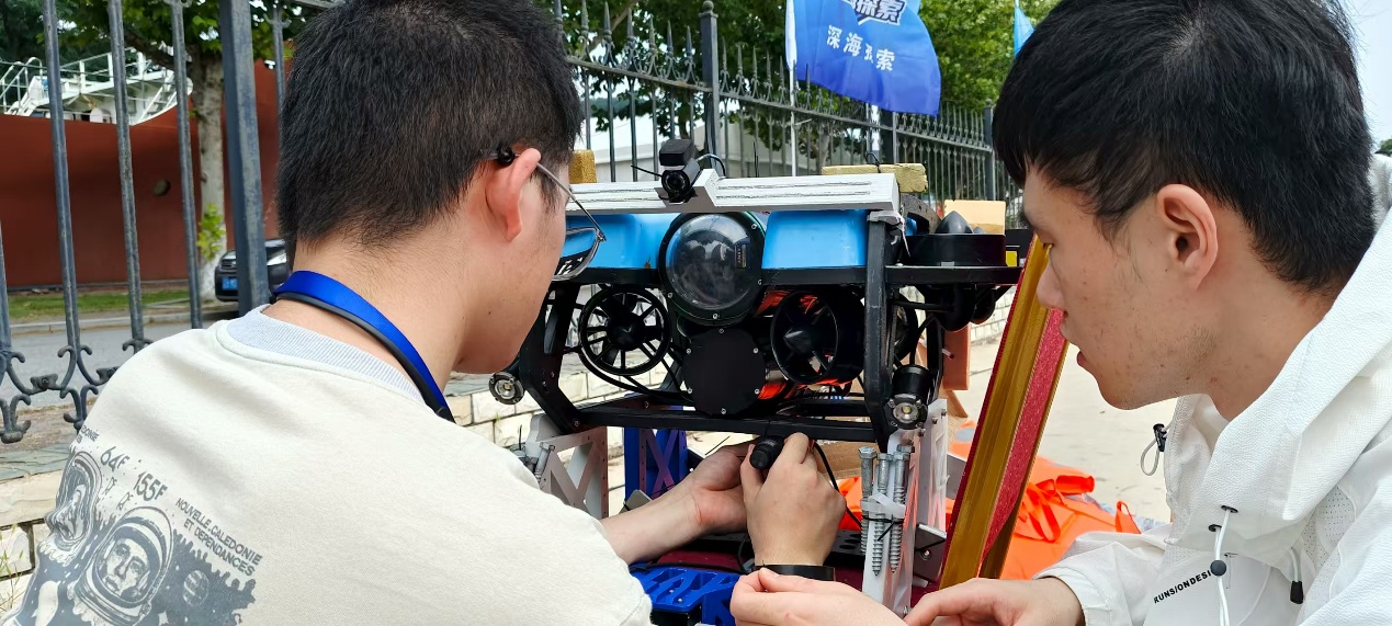 自主抓取赛项要求参赛水下机器人在真实开放海域环境下,下潜至海底自主搜寻并识别海参、扇贝等海产品,而后尽可能多地精准抓取并带回。该赛项对机器人的水下感知探测、目标识别以及智能抓取作业能力提出了极高要求。为攻克这些难题,在指导老师们的引领下,“海洋之心”团队成员们整个暑假都沉浸在紧张的备赛中。他们自主研发了全新一代的RUE - NET水下图像实时增强网络,针对复杂海洋环境中光线折射、水体浑浊等问题,极大地提升了水下模糊图像的对比度与清晰度。