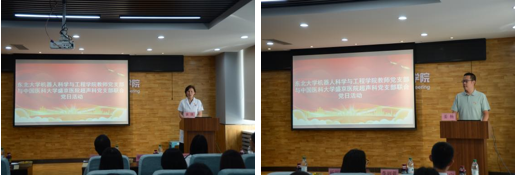 8时30分,联合党日活动在建筑学馆B座302报告厅正式启动,由机器人学院迟剑宁副教授主持。盛京医院超声科党支部书记黄瑛系统介绍科室发展历程及“党建强科、服务立业”的工作理念,强调“科研人员是国家创新体系的重要支撑,保障其健康就是守护科技创新的源头活水”。机器人学院教师党支部书记姜杨围绕“党建+科研双轮驱动”模式,分享学院在智能医疗机器人领域的布局规划,提出以临床需求为导向,推动技术成果向诊疗场景转化的合作构想。